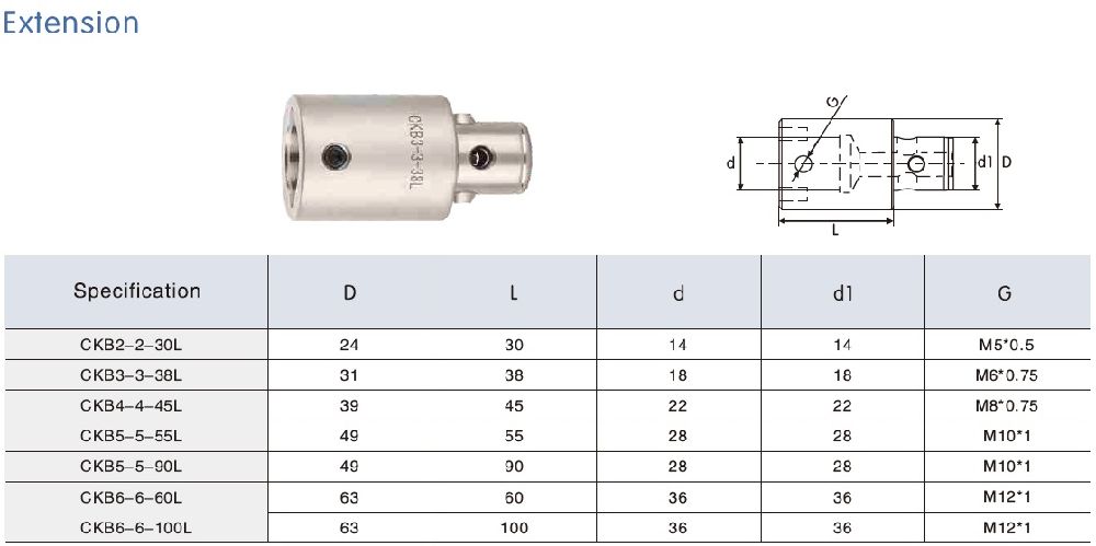 Uzatma Extension CKB3-3-38L Çap / D: 31 Boy / L : 38 İç Çap / d : 18 d1 : 18 Diş Ölcüsü / G : M6*0.75